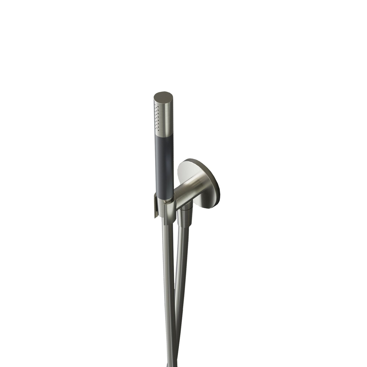 HotBath Cobber M440 staafhanddouche met wandsteun en uitlaat en doucheslang 150cm nikkel Geborsteld