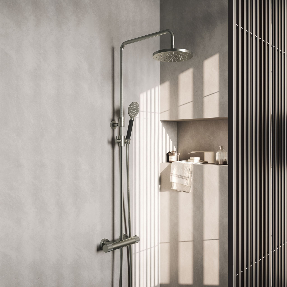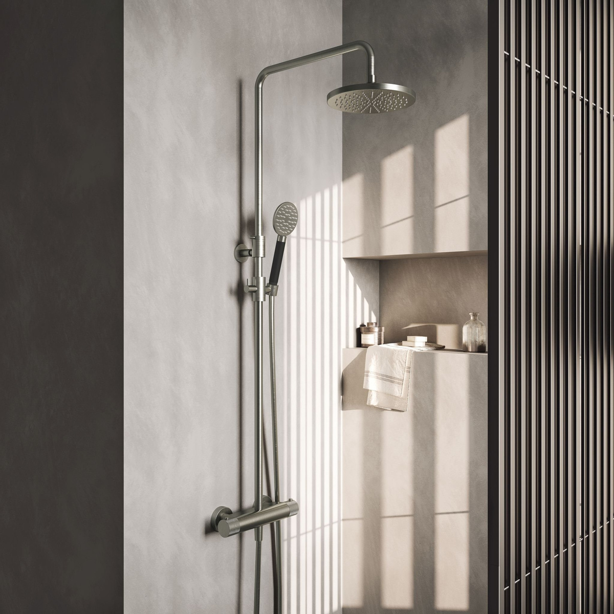 Maak van jouw badkamer een oase van rust en stijl met de Hotbath Cobber X SDS9 opbouw regendoucheset in Geborsteld nikkel!