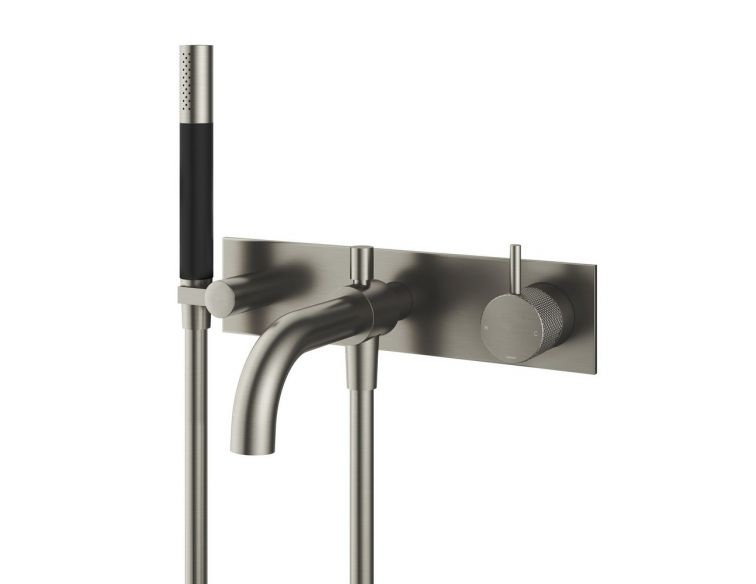 HotBath Cobber X afbouwdeel voor inbouw badmengkraan met staafhanddouche en doucheslang CX026EXT Geborsteld nikkel