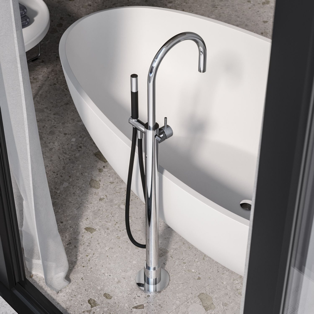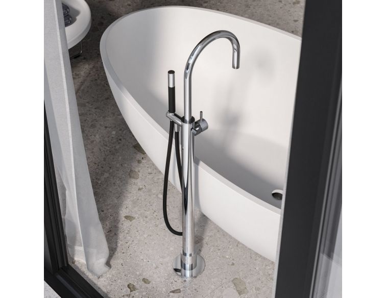 De Hotbath Cobber X badmengkraan in Chroom voegt stijl en functionaliteit toe aan je badkamer. Deze staande badkraan heeft een moderne uitstraling dankzij de hoogglans Chroom afwerking. Met de eengreepsbediening en hendel kun je de watertemperatuur en -druk eenvoudig regelen. De kraan is voorzien van een handdouche, een omstelfunctie en een hoofddouche, waardoor je kunt genieten van een complete douche-ervaring. Dankzij het waterbesparende ontwerp is deze badkraan ook nog eens milieuvriendelijk. De Hotbath Cobber X badmengkraan combineert stijl, comfort en duurzaamheid.