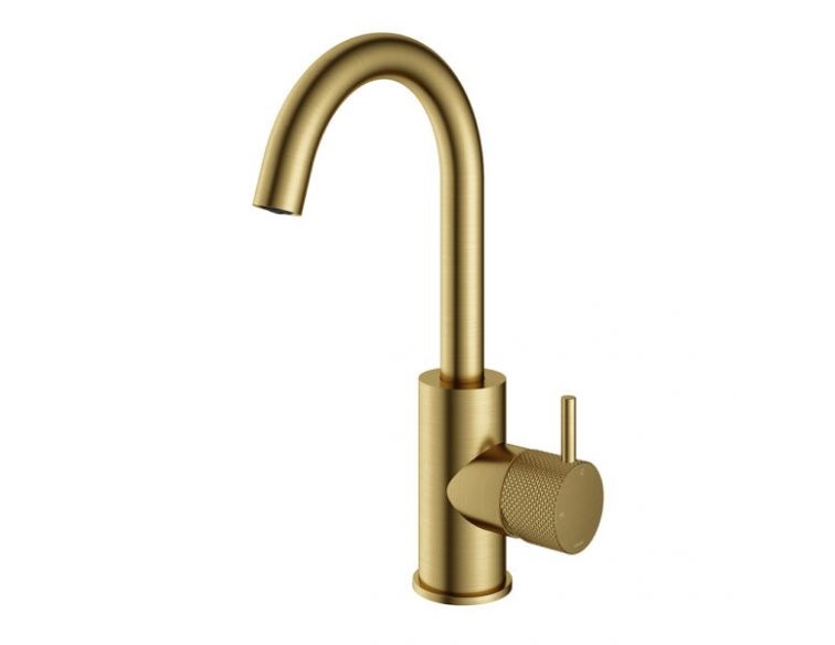 HotBath Cobber X wastafelmengkraan met draaibare uitloop zonder waste Geborsteld messing pvd