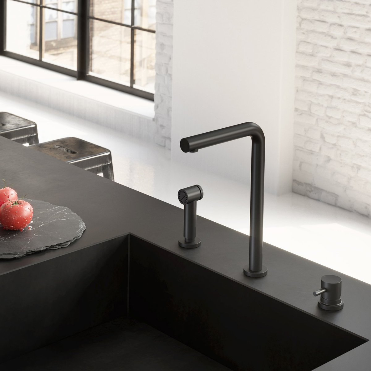Offerte aanvraag voor HotBath Fellow keukenmengkraan driegats met draaibare uitloop en uitneembare handdouche Geborsteld nikkel