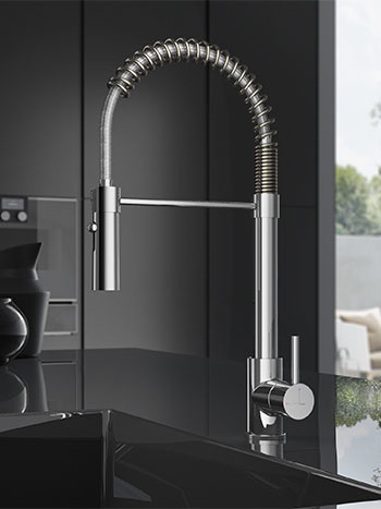 De Hotbath Fellow keukenmengkraan is een prachtige toevoeging aan elke keuken. Met zijn hoogte en mooie ronde uitloop trekt deze kraan meteen de aandacht. De kraan is uitgevoerd in Geborsteld nikkel en beschikt over een flexibel uitneembare handdouche, die eenvoudig in de houder kan worden geplaatst.