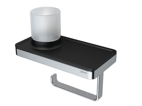 Geesa Frame Closetrolhouder met Zwart Planchet + Led-Lichthouder Chroom