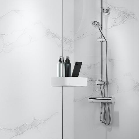 - Hoogte: Met een hoogte van 10,6 cm biedt hij voldoende opslagruimte voor al je favoriete shampoo's, conditioners en andere douchebenodigdheden.