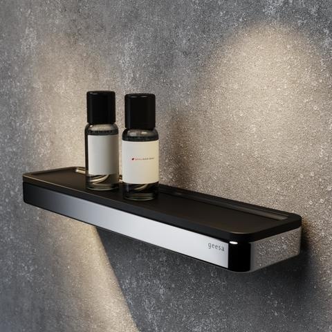 Voeg een vleugje stijl toe aan je badkamer met de Geesa Frame planchet met zwarte inzet. Het is de perfecte mix van design en functionaliteit!