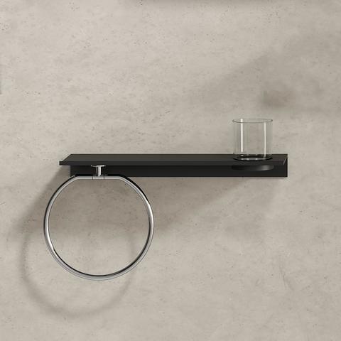 Geesa Leev Planchet 40cm Zwart met Glas en Handdoekring Chroom