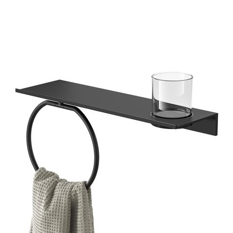 Geesa Leev Planchet 40cm Zwart met Glas en Handdoekring