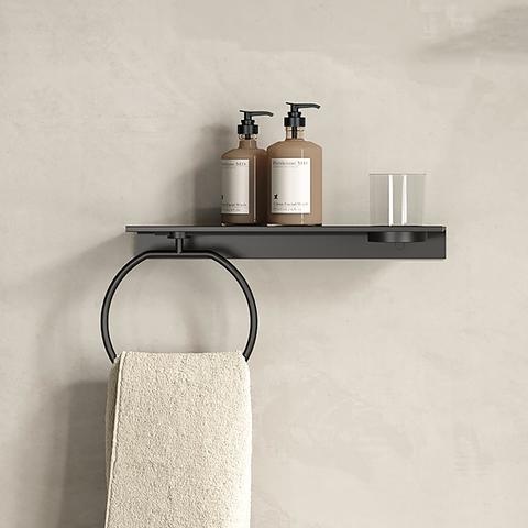 Geesa Leev planchet 40cm zwart met glas met handdoekring zwart