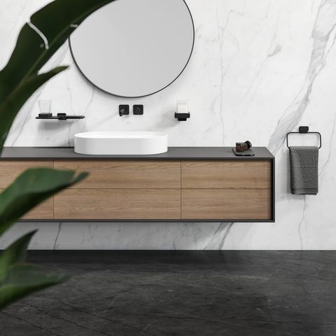 Of je nu een moderne, industriële of minimalistische badkamer hebt, de Geesa Shift handdoekring past perfect in ieder interieur. Het matte zwart geeft een chique uitstraling en het stevige metaal zorgt ervoor dat je handdoeken altijd binnen handbereik zijn.