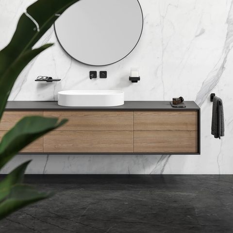 - Elegante uitstraling: De mat zwarte kleur en marmerlook geven een luxe gevoel aan elke badkamer.