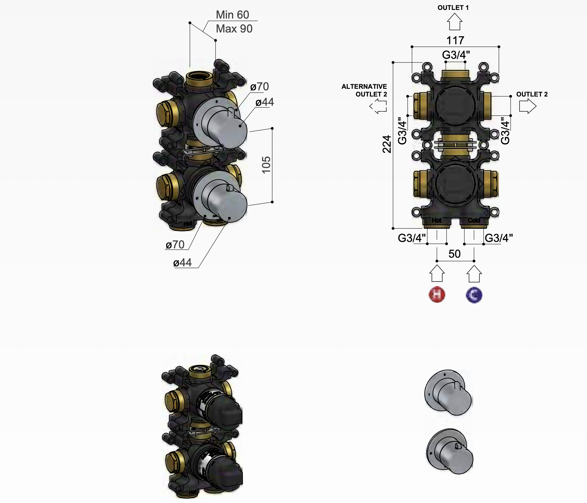 Offerte aanvraag voor HBAC009 - Inbouw thermostaat met 2-weg stop-omstel