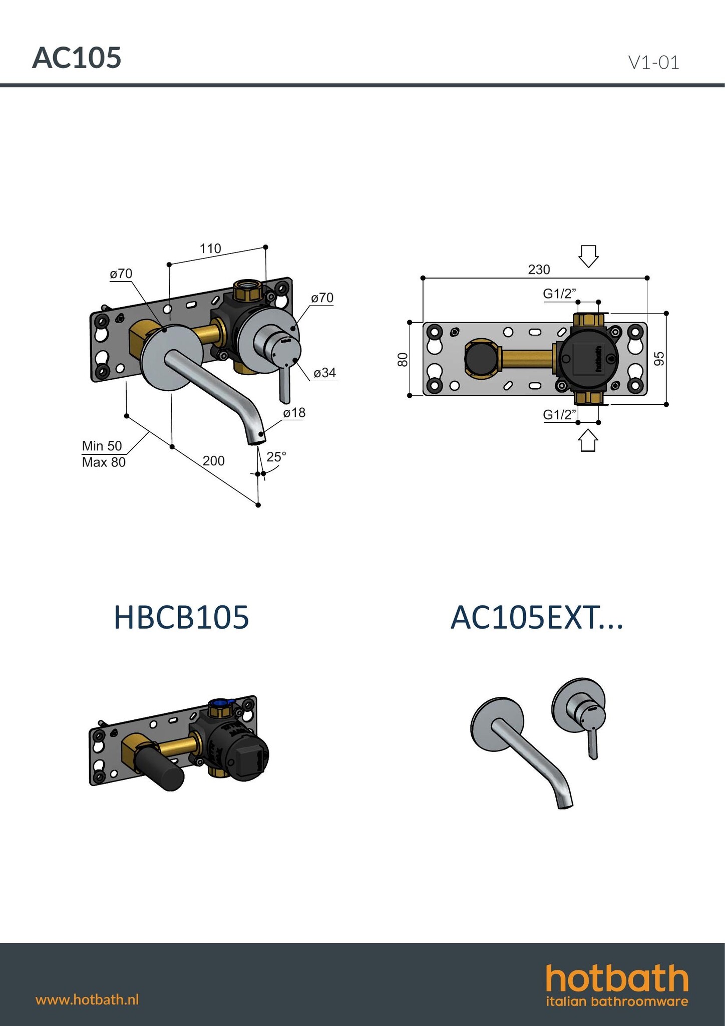 Offerte aanvraag voor Hotbath Afbouwdeel t.b.v. inbouw wastafelmengkraan met 20cm uitloop Geborsteld Nikkel AC105EXTGN