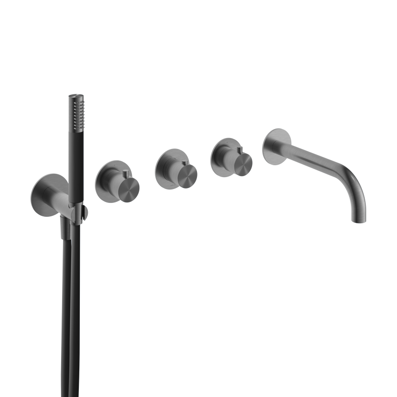 Wil je jouw badkamer een unieke uitstraling geven? Kies dan voor het HotBath Archie Afbouwdeel. Dit afbouwdeel is voorzien van een Archie douche thermostaat met 2 stopkranen en een elegante uitloop, allemaal in de prachtige kleur geborsteld gunmetal PVD. Deze kleur onderscheidt zich door zijn tijdloze en stoere uitstraling, waardoor je badkamer direct een verfijnde touch krijgt.