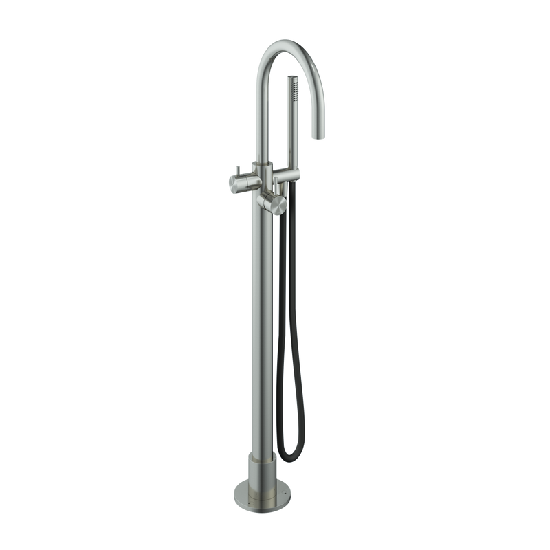 Hotbath Archie badmengkraan met draaibare uitloop vloermontage RVS 316