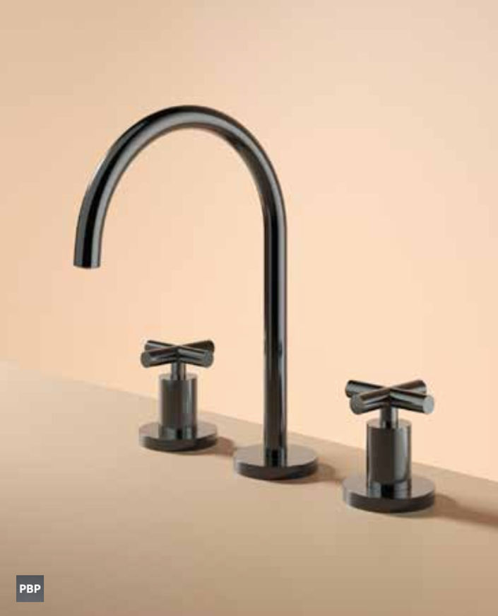 Hotbath Chap C133 wastafelkraan 3-gats - Gepolijst zwart PVD