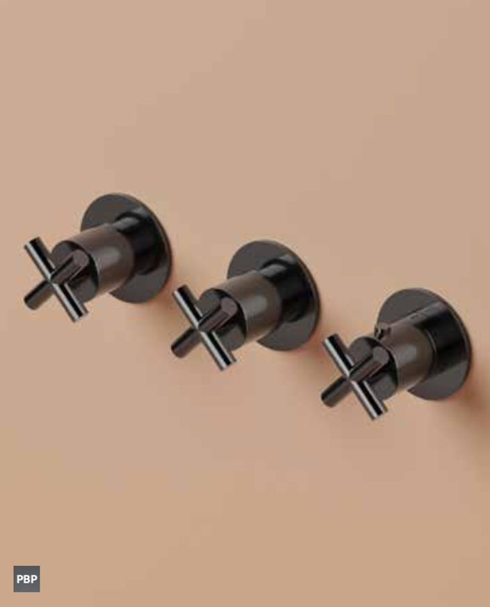 Hotbath Chap C7067EXT afbouwdeel voor Inbouw thermostaat - 2 stopkranen - Geborsteld messing PVD