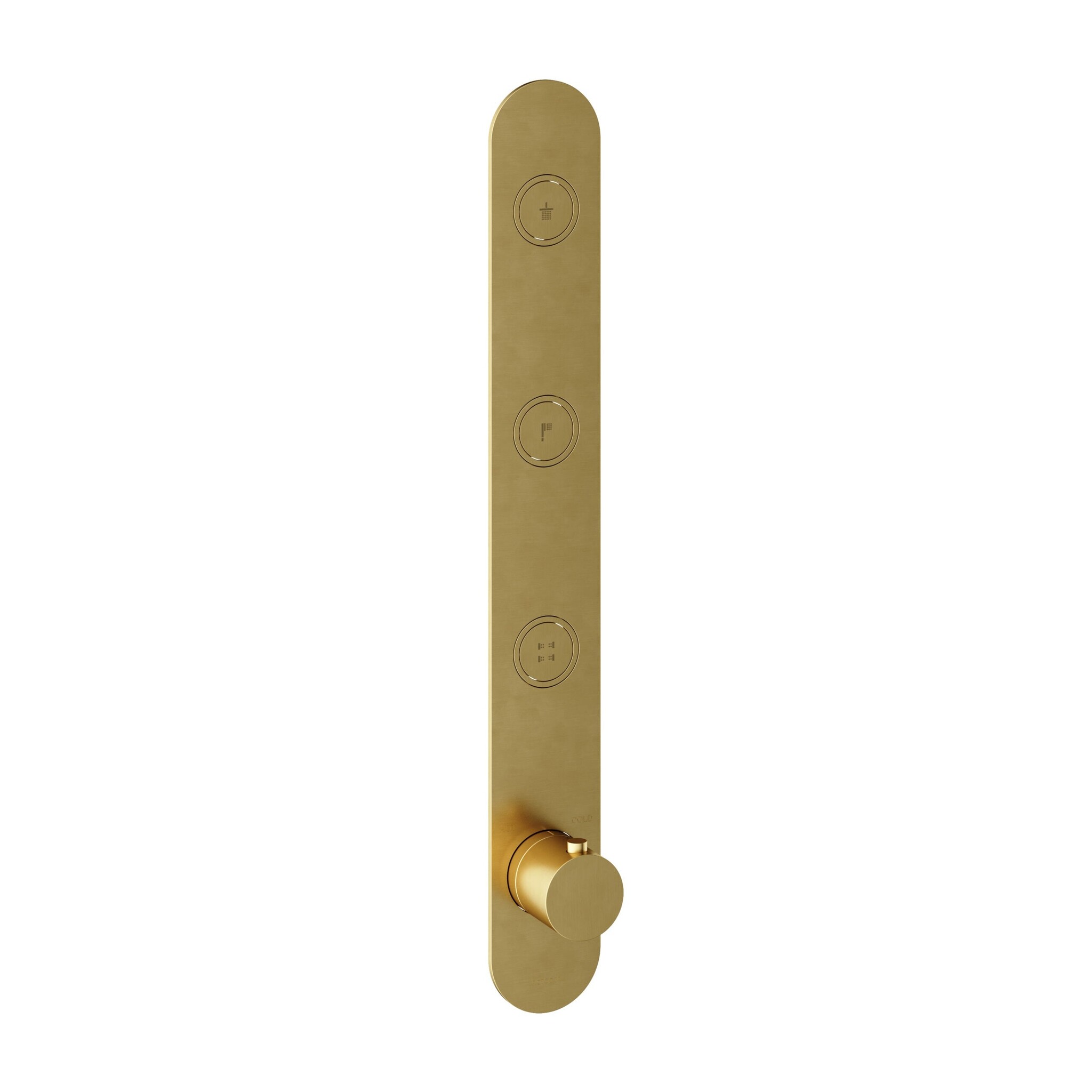 HotBath Cobber Afbouwdeel - Inbouwthermostaat met 3 pushbuttons verticale plaatsing Geborsteld Messing PVD PB050EXTBBP