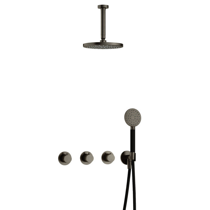 De set wordt geleverd met een indrukwekkende 25 cm hoofddouche en een ronde handdouche, zodat je kunt genieten van een verfrissende douche-ervaring. Beide douches zijn gemakkelijk te bedienen dankzij de twee afzonderlijke stopkranen, en je kunt ze zelfs gelijktijdig gebruiken voor ultiem comfort. De ingebouwde thermostaat zorgt ervoor dat je altijd de perfecte watertemperatuur hebt.