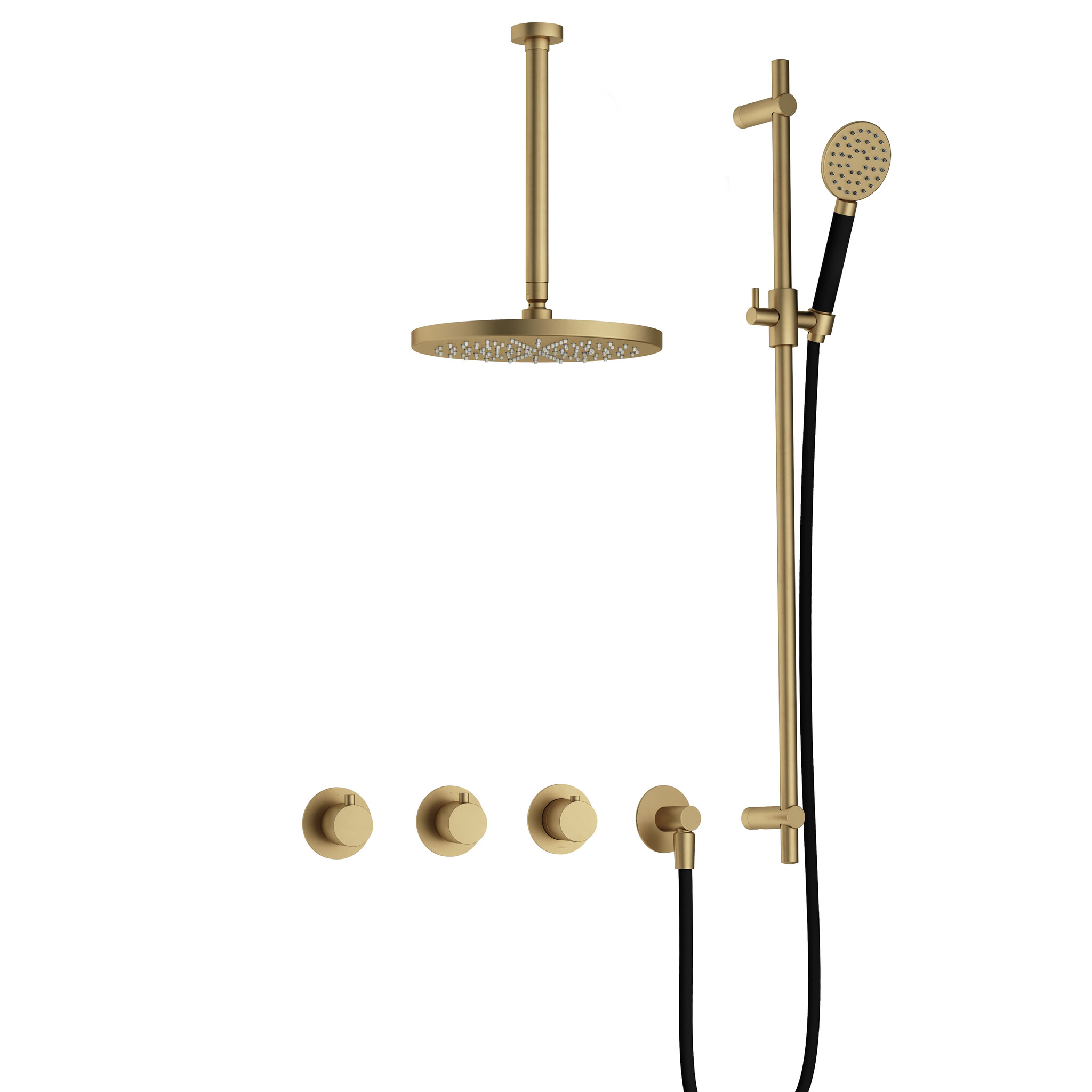 Offerte aanvraag voor Hotbath Cobber IBS70 inbouw doucheset - ronde handdouche - 25cm hoofddouche - 30cm plafondbuis - glijstang - geborsteld messing