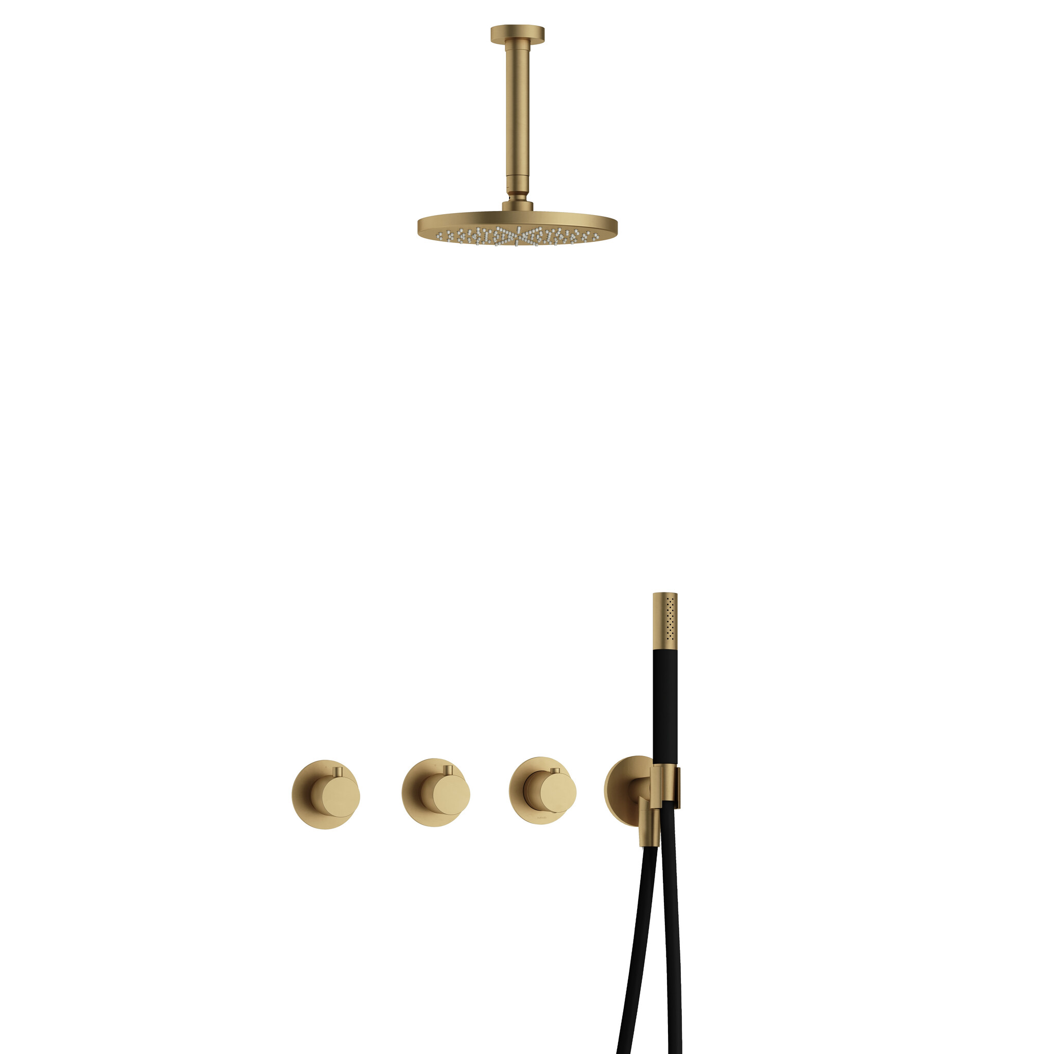 Hotbath Cobber IBS70 inbouw doucheset - staafhanddouche - 25cm hoofddouche - 15cm plafondbuis - wandhouder - geborsteld messing