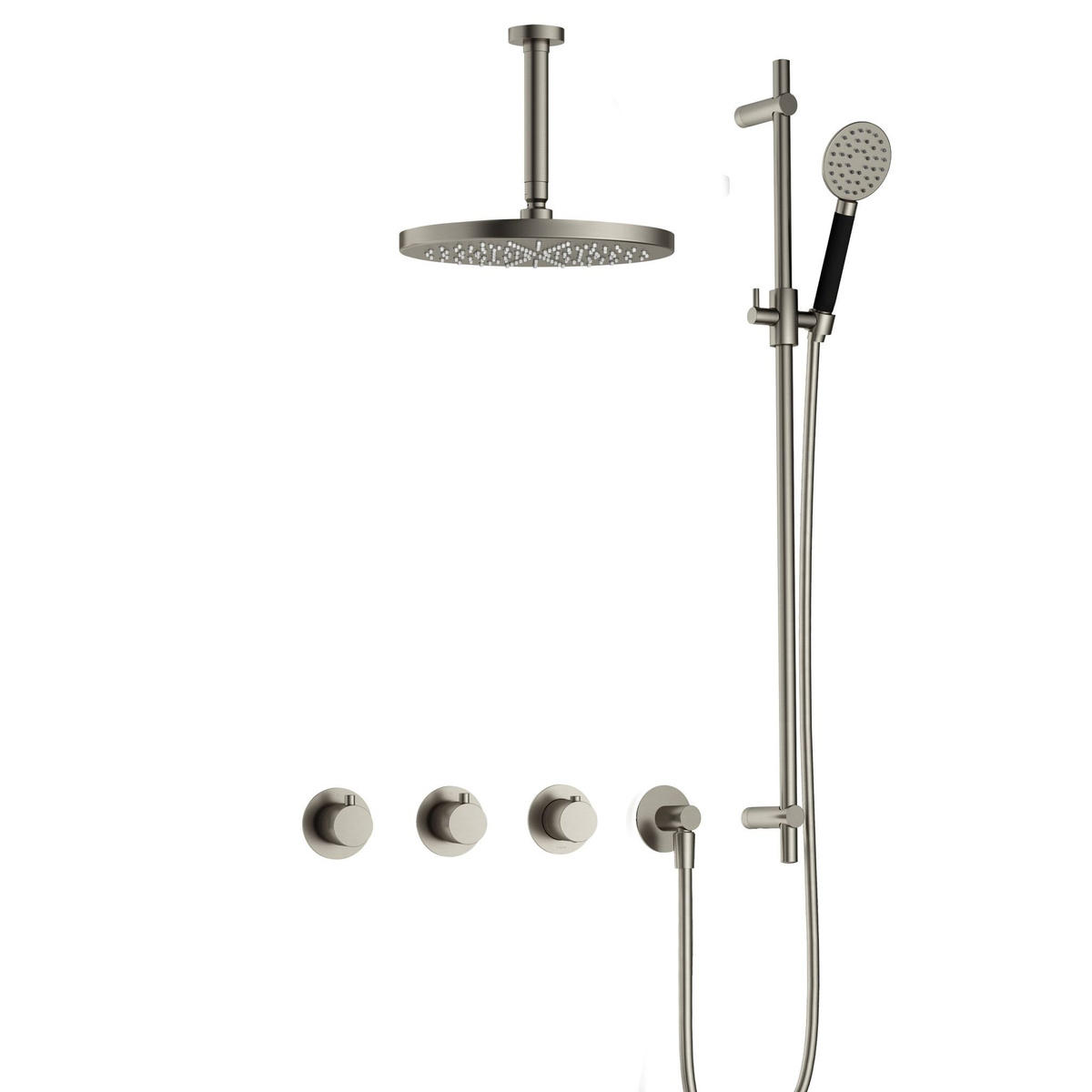 Offerte aanvraag voor Hotbath Cobber Regendoucheset IBS70 | Geborsteld Nikkel | Ronde handdouche | 30cm Hoofddouche | 15cm Plafondbuis | Handouche met glijstang