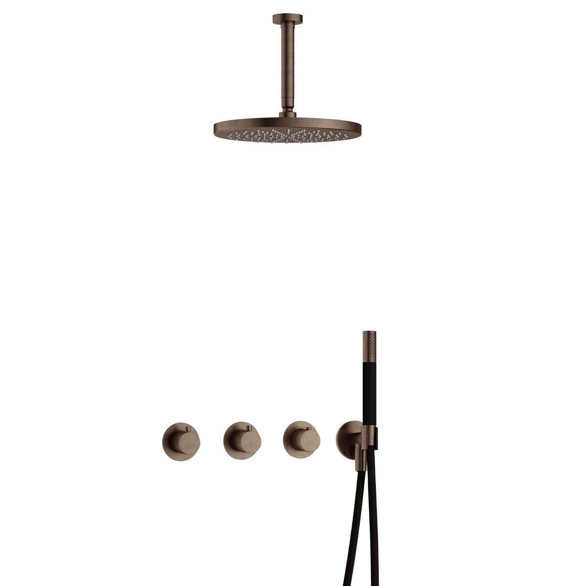 Hotbath Cobber Regendoucheset IBS70 - Verouderd Messing - Staaf handdouche - 30cm Hoofddouche - 15cm Plafondbuis - Handouche met wandhouder