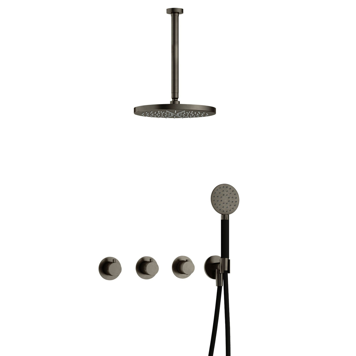 Hotbath Cobber Regendoucheset IBS70 | Verouderd ijzer | Ronde handdouche | 30cm Hoofddouche | 30cm Plafondbuis | Handouche met wandhouder