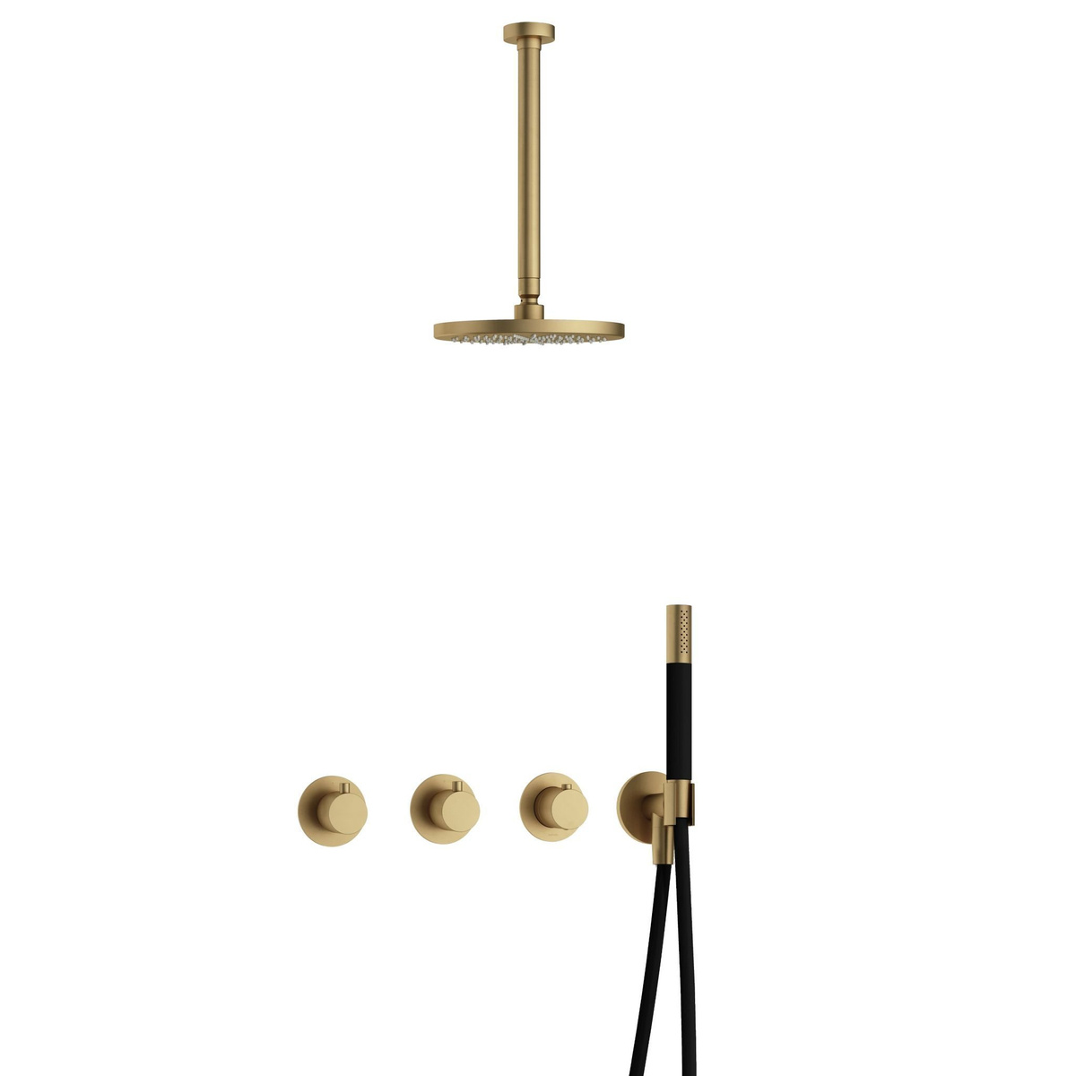 Hotbath Cobber IBS70 Regendoucheset inbouw - 30cm plafondarm - 20cm ronde hoofddouche - staafhanddouche - Geborsteld messing