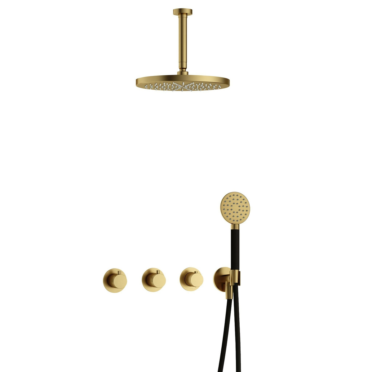 Offerte aanvraag voor Hotbath Cobber Regendoucheset IBS70 | Geborsteld Messing PVD | Ronde handdouche | 30cm Hoofddouche | 15cm Plafondbuis | Handouche met wandhouder