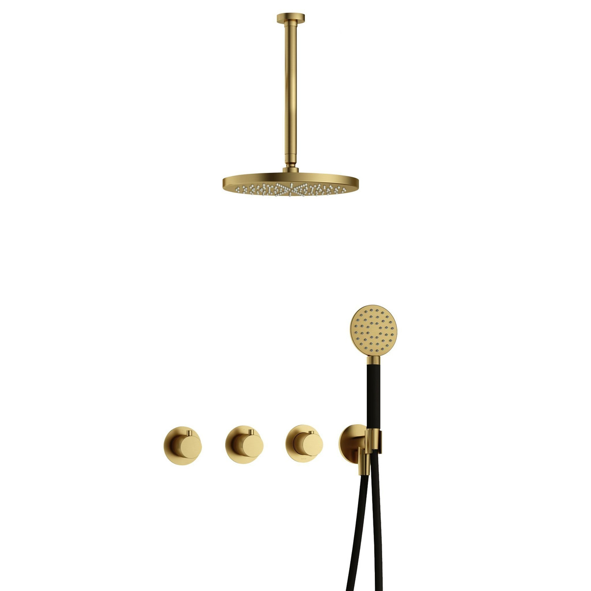 Offerte aanvraag voor Hotbath Cobber Regendoucheset IBS70 | Geborsteld Messing PVD | Ronde handdouche | 30cm Hoofddouche | 30cm Plafondbuis | Handouche met wandhouder