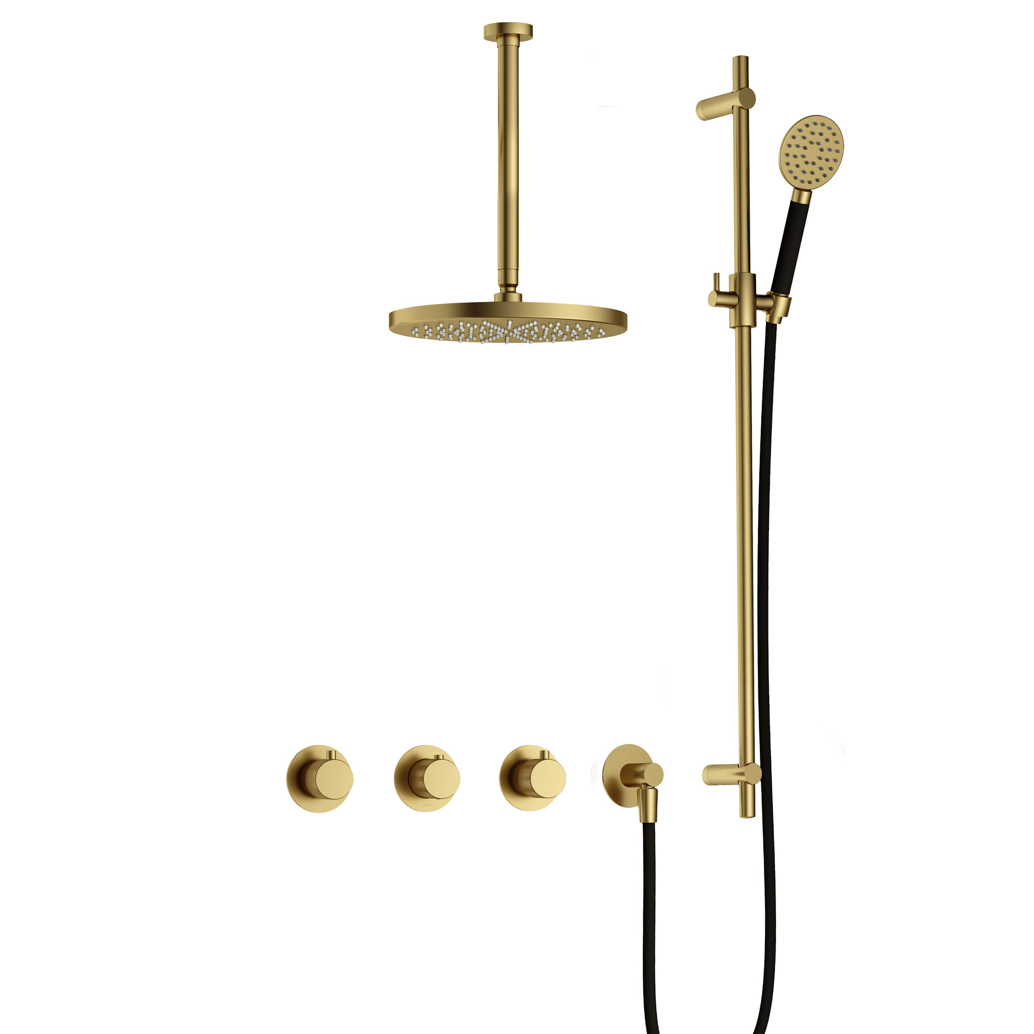 Offerte aanvraag voor Hotbath Cobber X IBSX70 inbouw doucheset - ronde handdouche - 25cm hoofddouche - 30cm plafondbuis - glijstang - geborsteld messing pvd