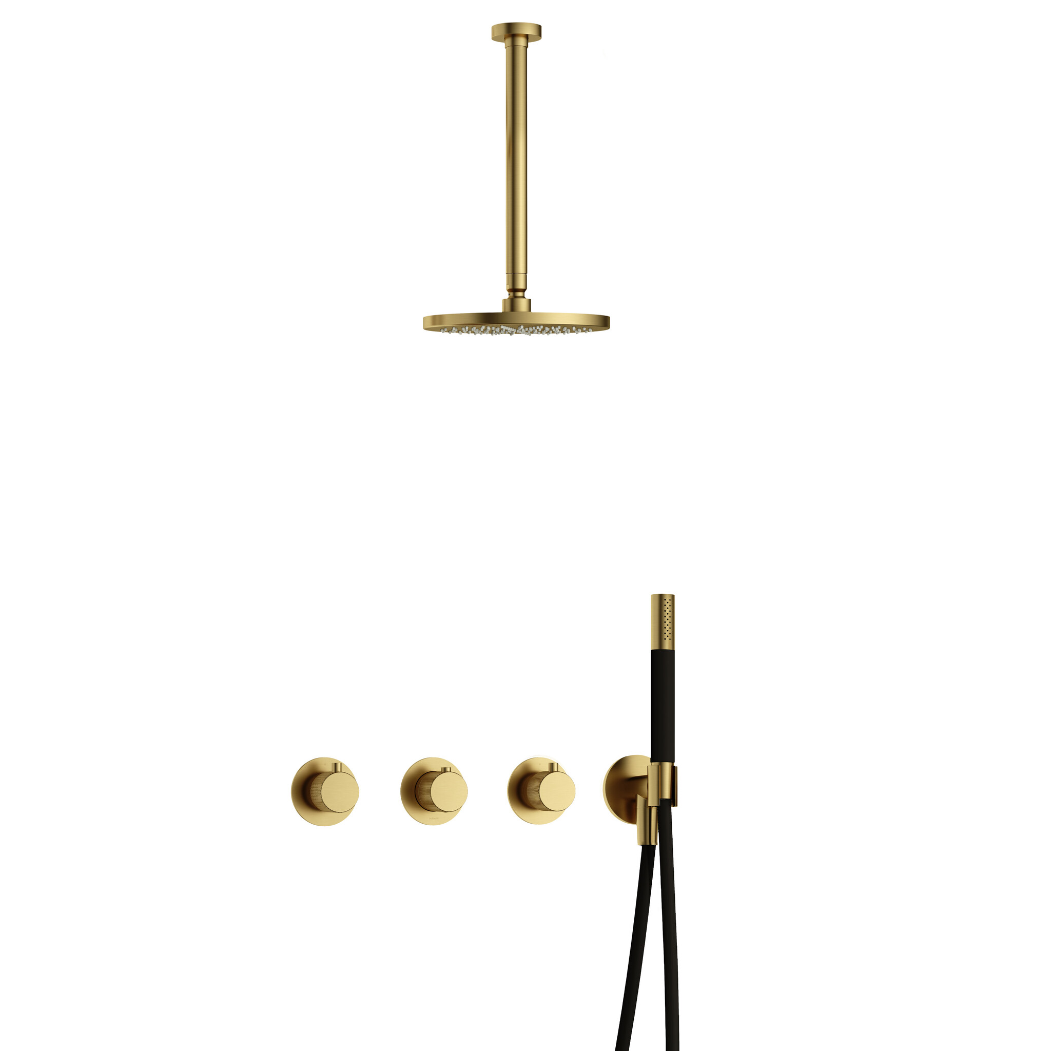 Hotbath Cobber X IBSX70 inbouw doucheset - staafhanddouche - 25cm hoofddouche - 30cm plafondbuis - wandhouder - geborsteld messing pvd