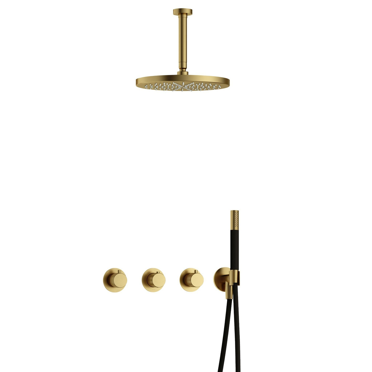 Offerte aanvraag voor Hotbath Cobber X Regendoucheset IBSX70 | Geborsteld Messing PVD | Staaf handdouche | 30cm Hoofddouche | Plafondbuis 15cm | Handdouche met wandhouder