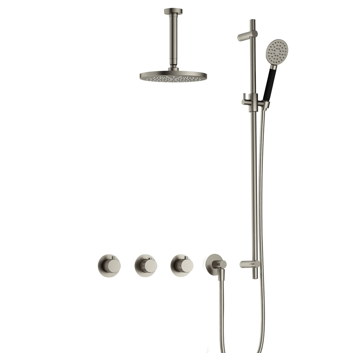 Hotbath Cobber X Regendoucheset IBSX70 | Geborsteld nikkel | Ronde handdouche | 20cm Hoofddouche | Plafondbuis 15cm | Handdouche met glijstang