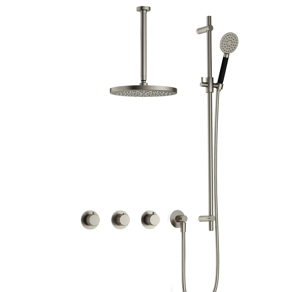 Hotbath Cobber X Regendoucheset IBSX70 - Geborsteld nikkel - Ronde handdouche - 30cm Hoofddouche - Plafondbuis 30cm - Handdouche met glijstang