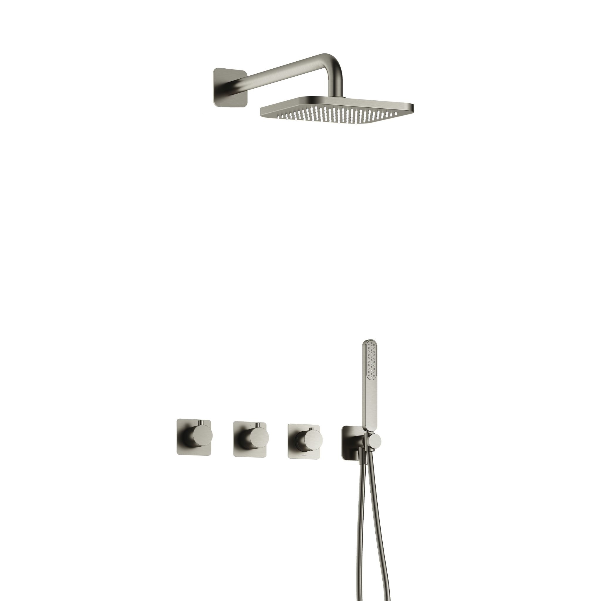 Breng stijl en functionaliteit naar je badkamer met de Hotbath Gal IBSGL70 inbouw doucheset. Gemaakt van geborsteld nikkel, biedt deze set een moderne, matte RVS-uitstraling die perfect past in elke tijdloze badkamer.
