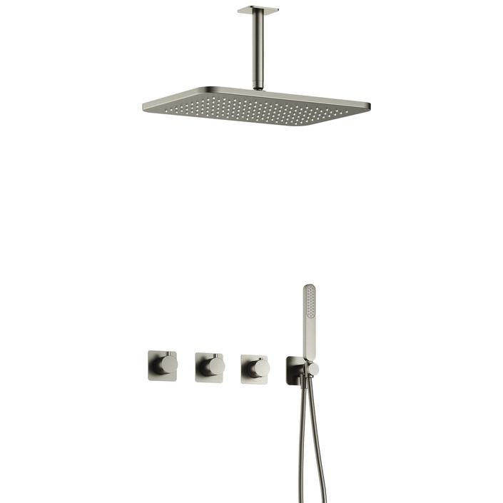 Hotbath Gal IBSGL70 inbouw doucheset met 2 stopkranen met plafondbuis en gl106 - Geborsteld nikkel