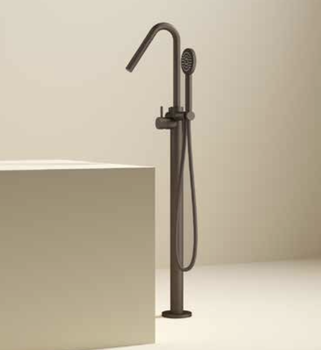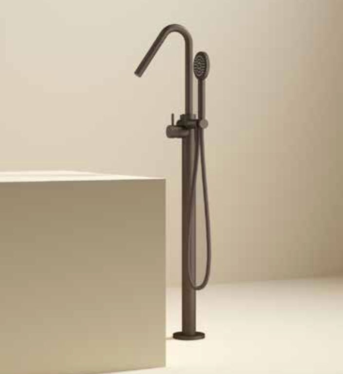 De matzwarte afwerking geeft deze kraan een moderne uitstraling, terwijl de eengreepsbediening zorgt voor eenvoudig gebruik. Dankzij de vrijstaande montage en de omstelinrichting, installeer je deze kraan zonder gedoe. Met een hoogte van 106 cm is het de perfecte aanvulling voor jouw vrijstaande bad.