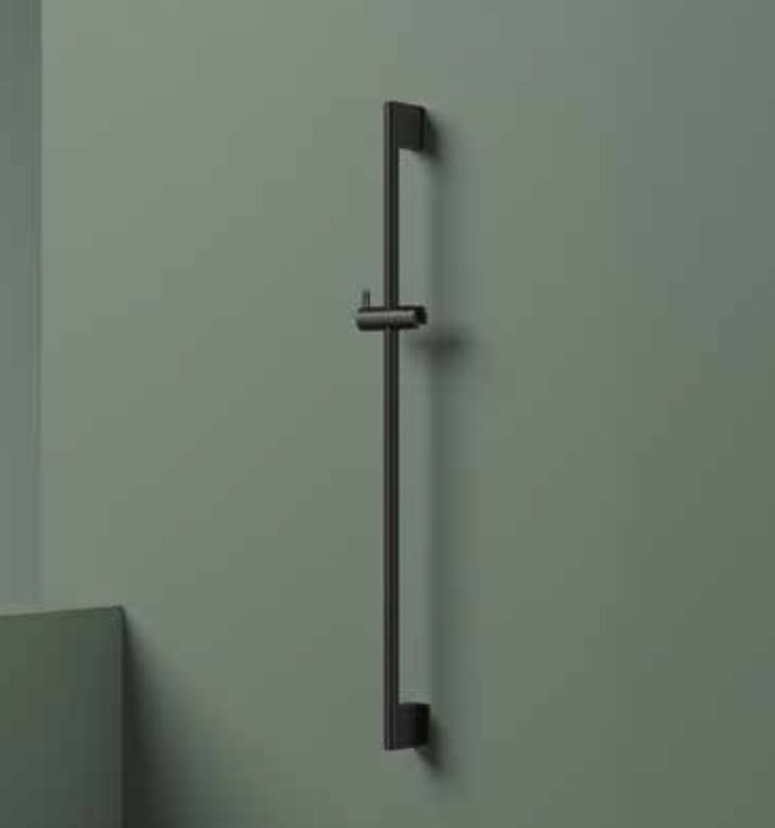 Breng een vleugje modern design en functionaliteit naar je badkamer met de Hotbath Mate M306 glijstang. Deze stijlvolle douchestang van 90 cm is perfect voor iedereen die op zoek is naar flexibiliteit en gebruiksgemak tijdens het douchen. De geborsteld zwarte PVD-afwerking geeft een luxe uitstraling die naadloos past in elke moderne badkamer.
