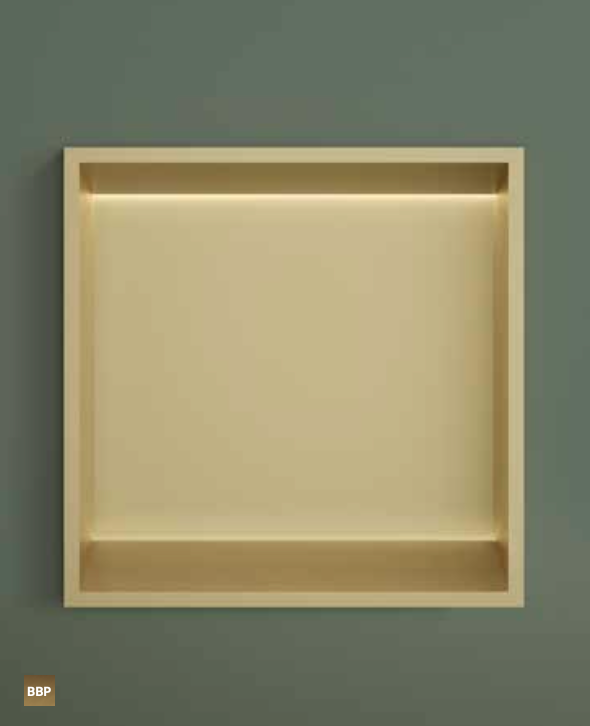 Hotbath &More inbouwnis 30x30x10cm - met frame - LED verlichting - geborsteld koper PVD