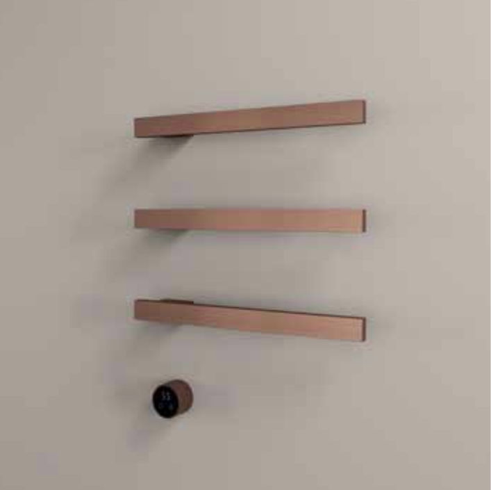 Deze handdoekwarmer is niet alleen een lust voor het oog, maar ook uiterst praktisch. De matte koperen afwerking behoudt zijn schoonheid dankzij de duurzame PVD-coating. Gemaakt van hoogwaardig roestvast staal, biedt het een betrouwbare en robuuste oplossing voor je badkamerverwarming.