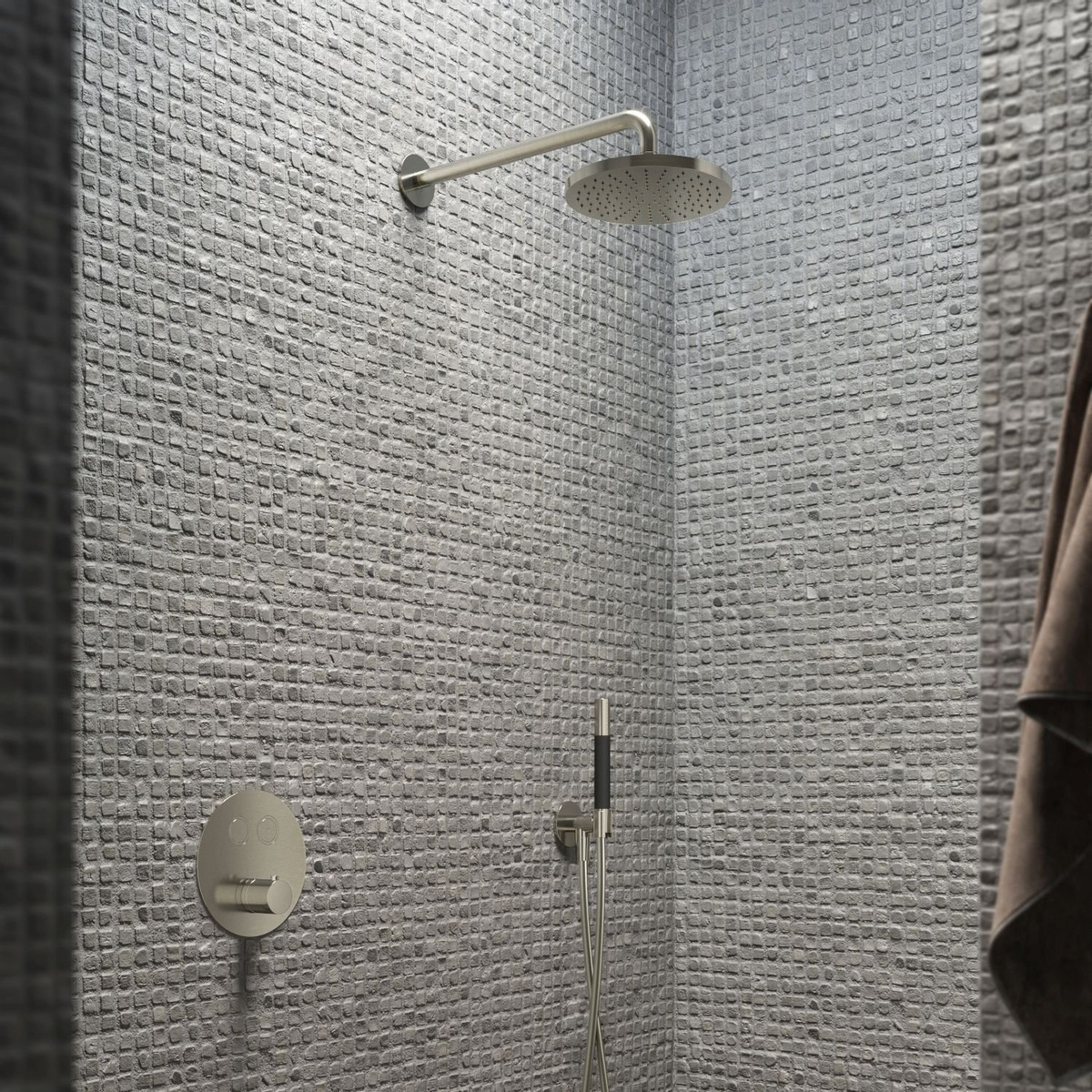 Hotbath Get together Regendoucheset IBS22 | Geborsteld nikkel | Staaf handdouche | 20cm Hoofddouche | Wandarm 35cm | Handdouche met wandhouder