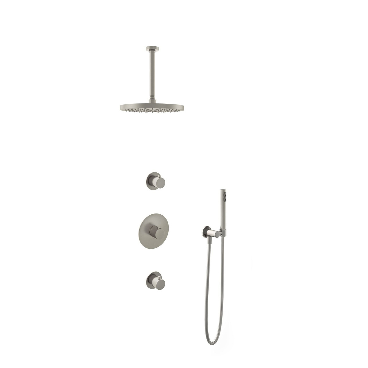Hotbath Get together Regendoucheset IBS1 - Geborsteld nikkel - Staaf handdouche - 30cm Hoofddouche - Plafondbuis 30cm - Handdouche met wandhouder