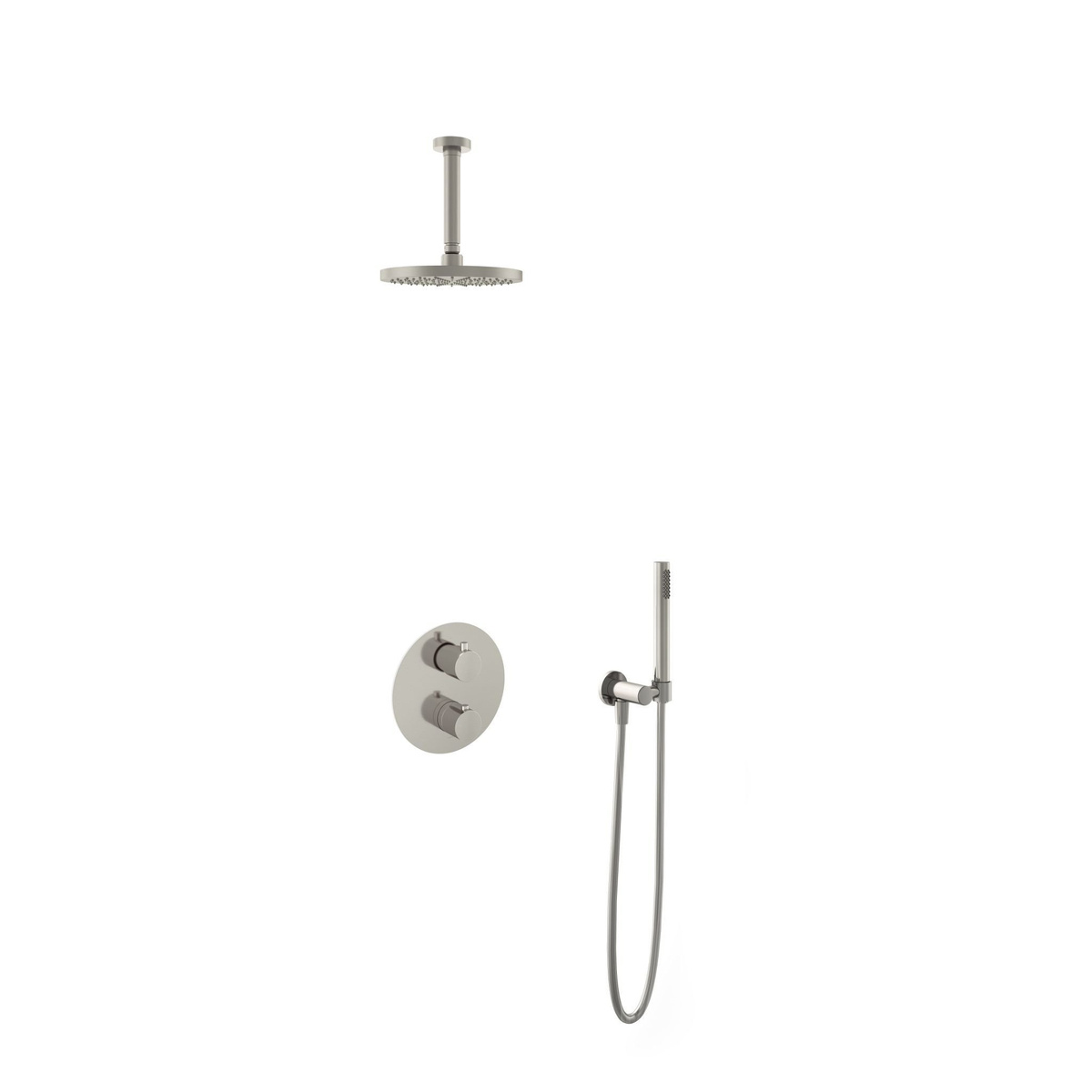 Hotbath Get together Regendoucheset IBS1A | Geborsteld nikkel | Staaf handdouche | 20cm Hoofddouche | Plafondbuis 15cm | Handdouche met wandhouder