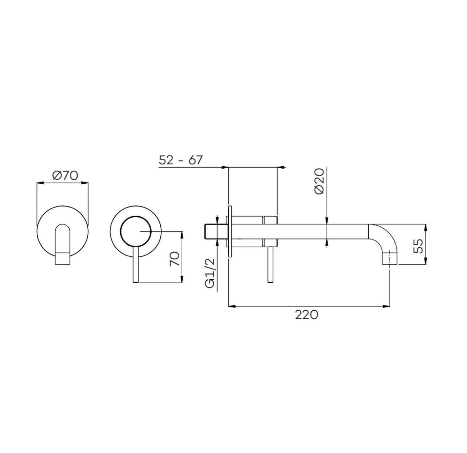 Inbouw Wastafelmengkraan Lagoo Garda met Uitloop Links 22 cm Messing Gunmetal