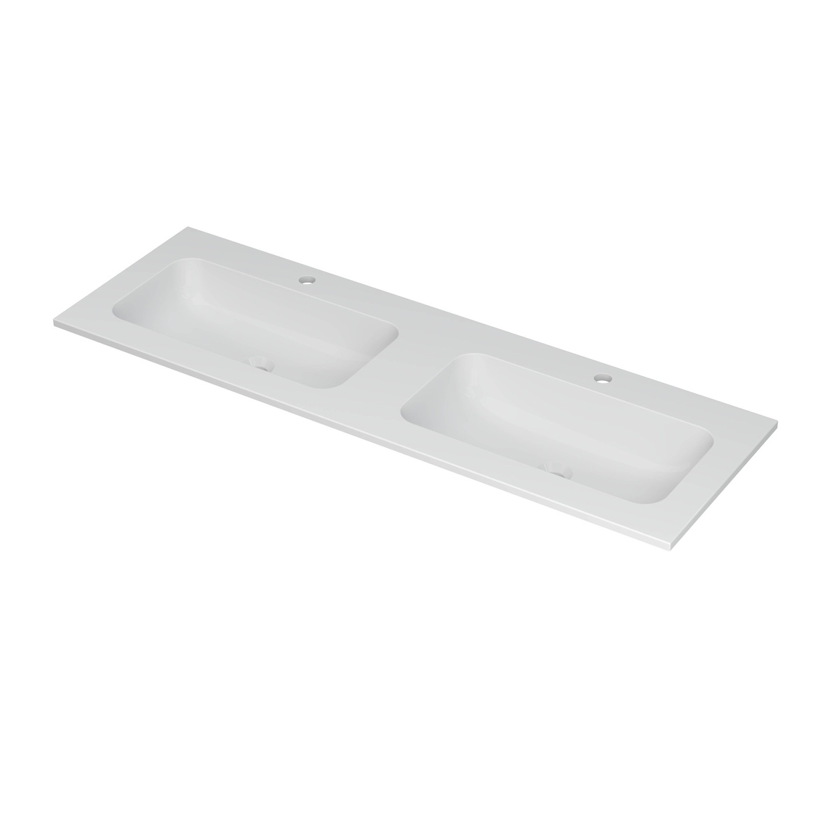 INK Aspekt wastafel - 140x45x1.5cm - 2 wasbakken - 2 kraangaten - porselein Mat wit
