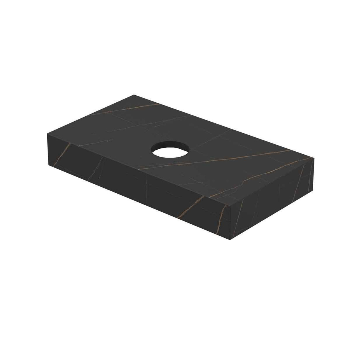 INK Blocq Fonteinplateau keramische slab met front en side skirts - 40x22x6cm - vrijhangend - uitsparing - keramiek - Lauren black mat