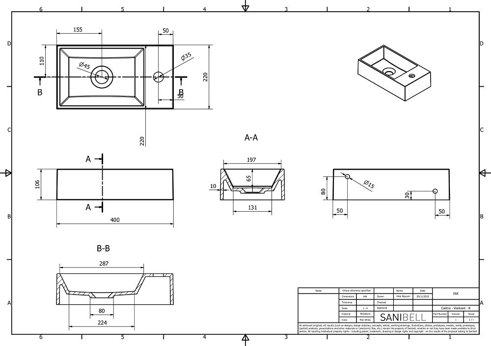 Offerte aanvraag voor INK Contra Fontein - 40x22x10cm - wasbak links - 1 kraangat - Polystone - Mat Wit