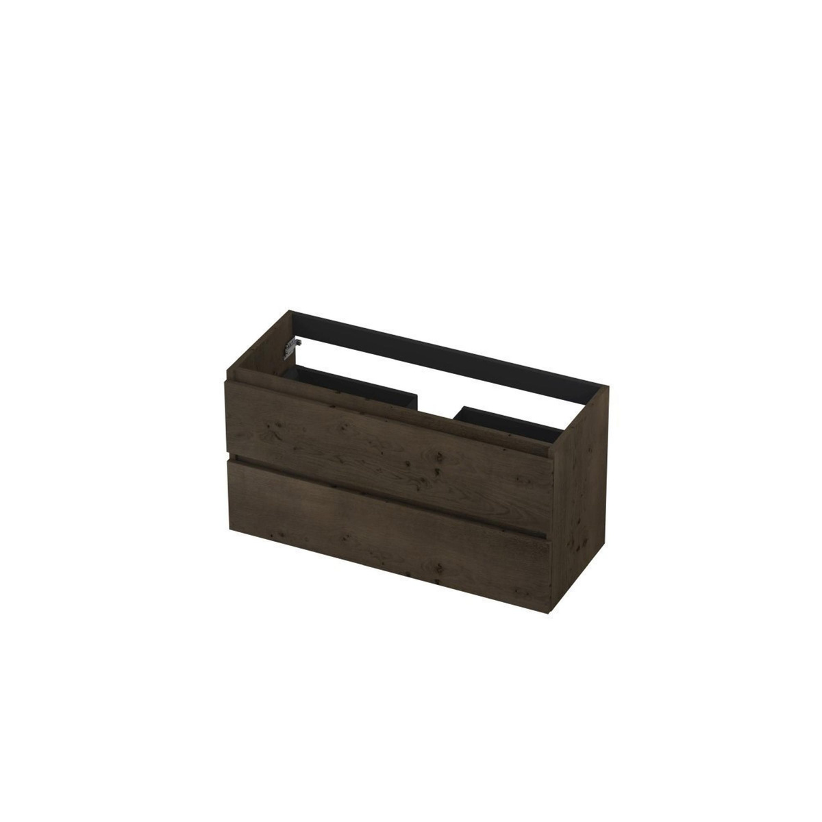 INK Fineer Wastafelonderkast - 100x40x52cm - 2 lades - greeploos - houten keerlijst - MDF - Fineer Charcoal